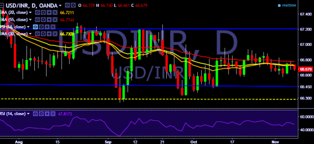 We prefer to take short position in USD/INR only below 66.66, stop loss 66.78 and target of 66.57/66.42.