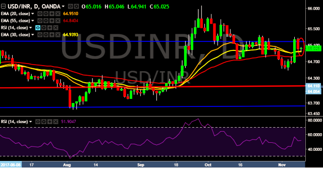 - It made intraday high at 65.04 and low at 64.94 marks.