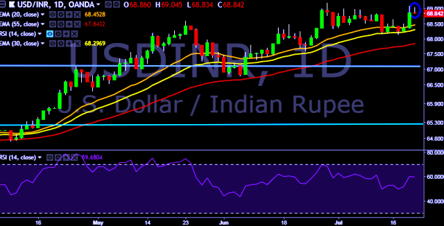 We prefer to take long position on USD/INR around 68.80, stop loss at 68.67 and target of 69.52.
