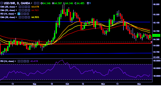 - USD/INR is currently trading around 64.48 marks.