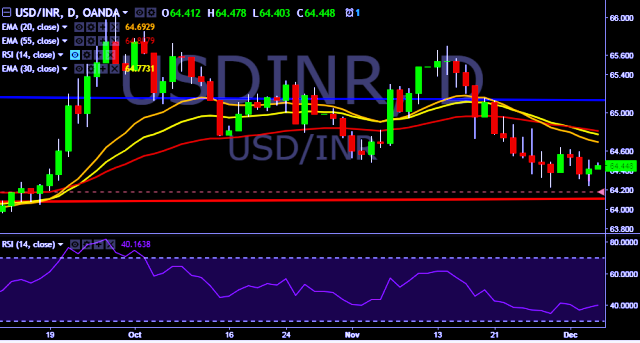 We prefer to take short position in USD/INR only below 64.40, stop loss at 64.55 and target of 64.22/64.05.