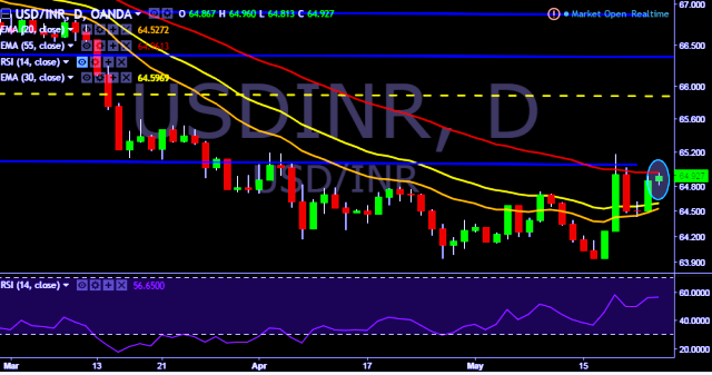 - USD/INR is currently trading around 64.91 marks.