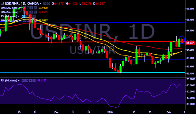 - It made intraday high at 64.41 and low at 64.18 marks.
