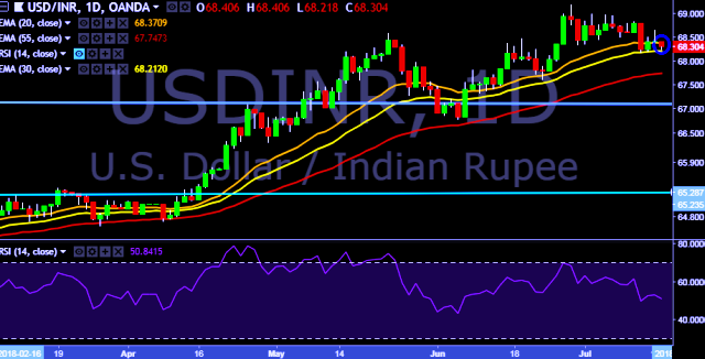 - USD/INR is currently trading around 68.30 marks.