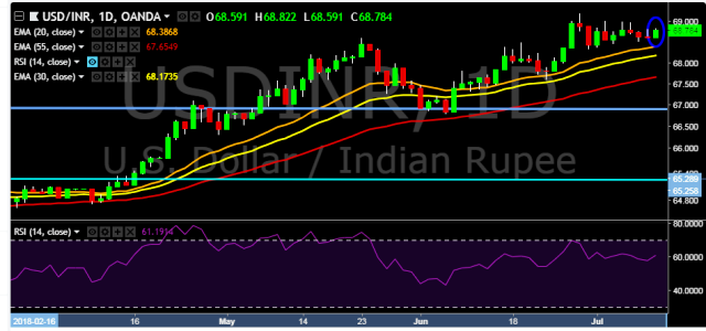 - It made intraday high at 68.82 and low at 68.59 marks.