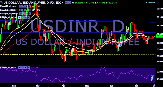 - It made intraday high at 67.23 and low at 67.16 marks.