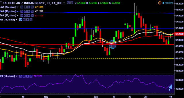 - It made intraday high at 67.23 and low at 67.15 marks.