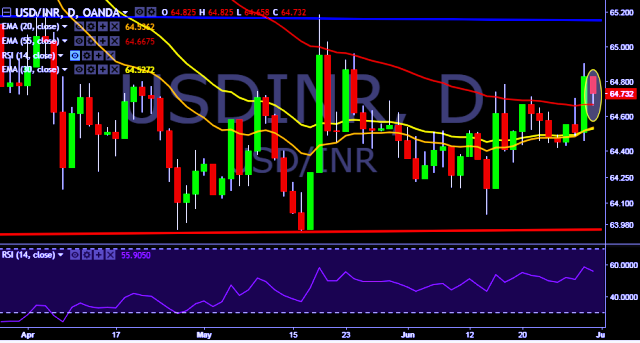 - Key resistances are seen at 64.82, 64.92, 65.02, 65.18, 65.34, 65.52 and 65.80 marks respectively.