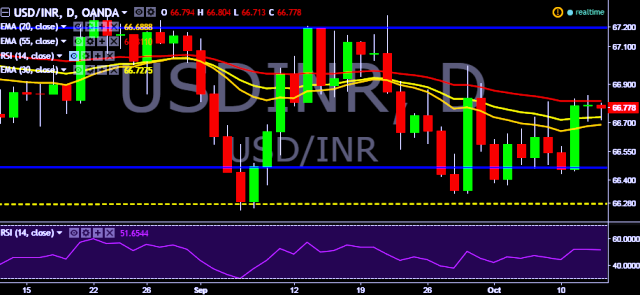 We prefer to take short position in USD/INR only below 66.71, stop loss at 66.96 and target of 66.49/66.24.