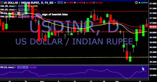 - Intraday bias remains neutral till the time pair holds immediate resistance at 67.05 marks.