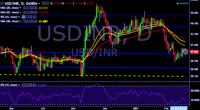 We prefer to take short position in USD/INR around 67.09, stop loss at 67.15 and target of 66.78.