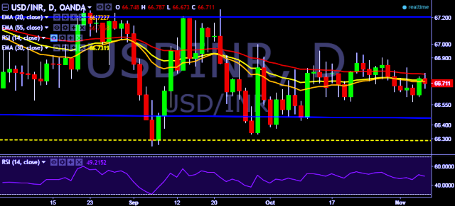 We prefer to take short position in USD/INR around 66.75, stop loss at 66.85 and target of 66.60/66.45.