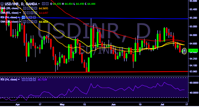 We prefer to take long position in USD/INR only above 64.50, stop loss at 64.36 and target of 64.62/64.75.