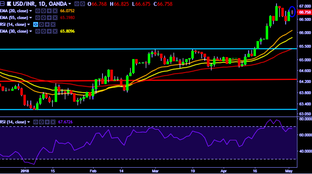 - Key resistances are seen at 66.82, 66.98, 67.20 and 67.48 marks respectively.