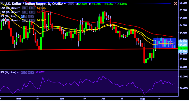 - Key resistances are seen at 64.12, 64.25, 64.32, 64.48, 64.60, 64.82, 64.98, 65.09, 65.18, 65.34, 65.52 and 65.80 marks respectively.