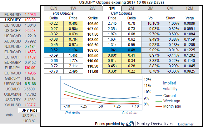 We came across the implied volatility of ATM contracts of USDJPY across all tenors are shrinking lower, just shy above 9.5%, while risk reversals have been bearish neutral.