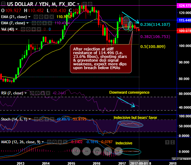 The current prices on major trend slide below EMAs again (refer monthly plotting), don't expect sharp rallies as the major trend seems to be on the verge of 38.2% Fibonacci retracements.
