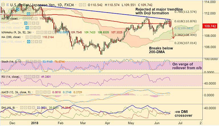 Recommendation: Good to go short on upticks around 109.75/85, SL: 110.25, TP: 109.20/ 109/ 108.65