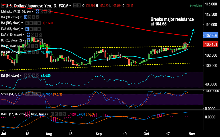 Recommendation: Good to go long on dips around 104.75, SL: 103.80, TP: 105.55/ 106/ 106.81