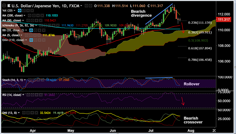Support levels - 110.50 (55-EMA), 110.10 (200-DMA), 109.90 (cloud and 38.2% Fib)