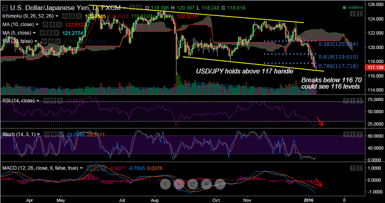 - On the other side a close above 117.72 will see pair rebound to 117.90 (5-DMA) and then to 118.81 (Jan 8 highs).