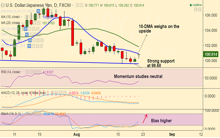 - The pair finds major resistance by 10-DMA at 100.90, break above could see test of 20-DMA at 101.81.