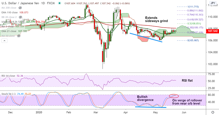 USD/JPY is extending sideways grind below 108 handle. The major is losing its bullish stance.