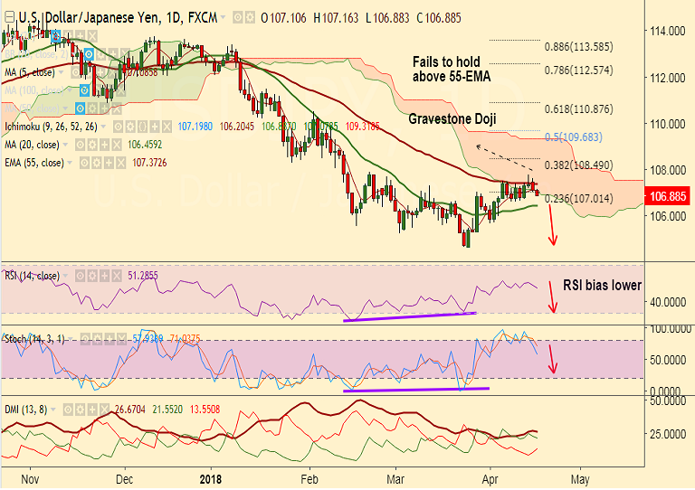 Resistance levels - 107.10 (5-DMA), 107.37 (55-EMA), 107.78 (Apr 13 high)