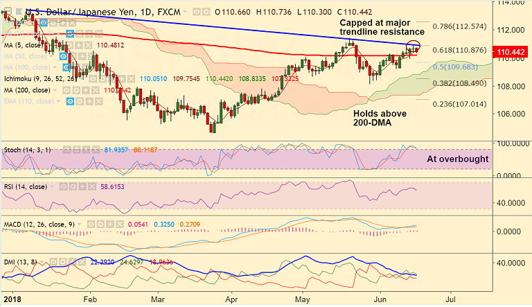 - On the upside, the pair needs to break above major trendline resistance at 110.90 for further upside.