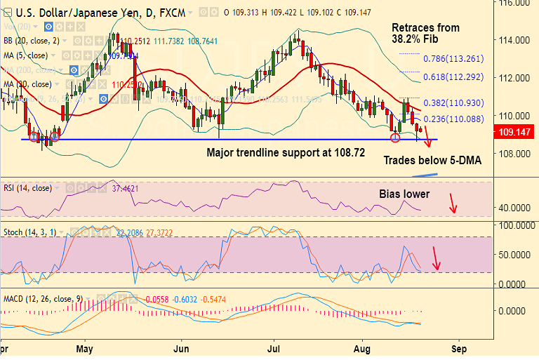 Support levels - 109.10 (session low), 108.72 (Triple bottom), 108.60 (Aug 18 low)