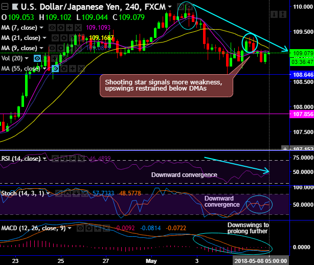 USDJPY major stiff resistance is observed at 109.1096 (i.e. 21SMA levels).