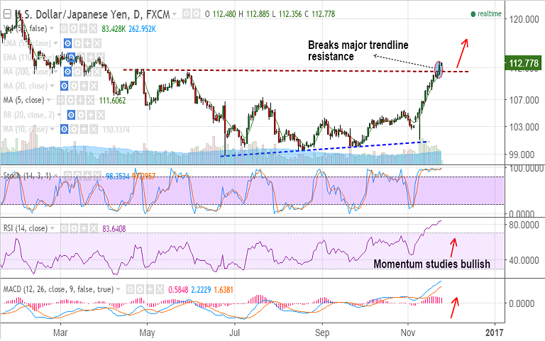 - USD/JPY has broken major resistance zone around 111.35-80. Bias remains higher.