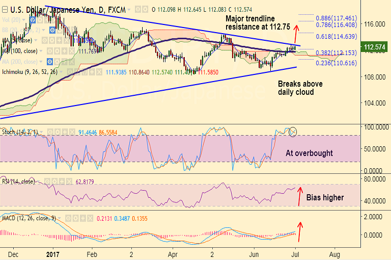 Call update: Our previous call (http://www.econotimes.com/FxWirePro-USD-JPY-slips-below-112-handle-finds-strong-support-at-100-DMA-good-to-short-break-below-783652) was not triggered as the pair failed to break below 100-DMA.