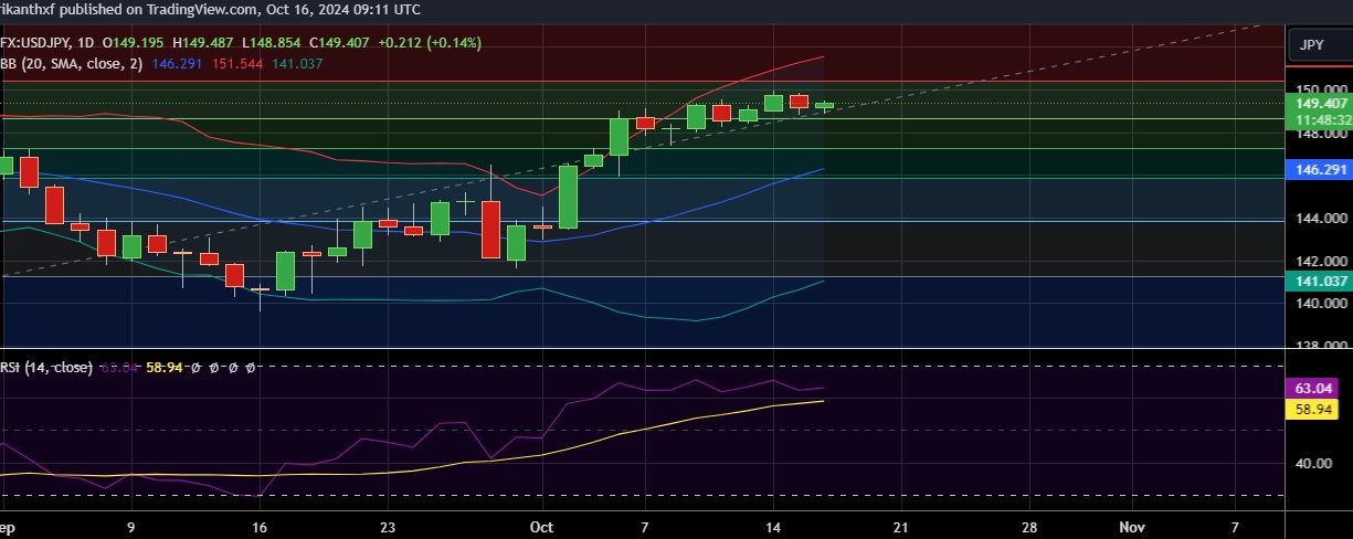 • At GMT 09:05, the pair was trading up 0.15 % at 149.41 , having touched day low at 148.90 earlier in the day.