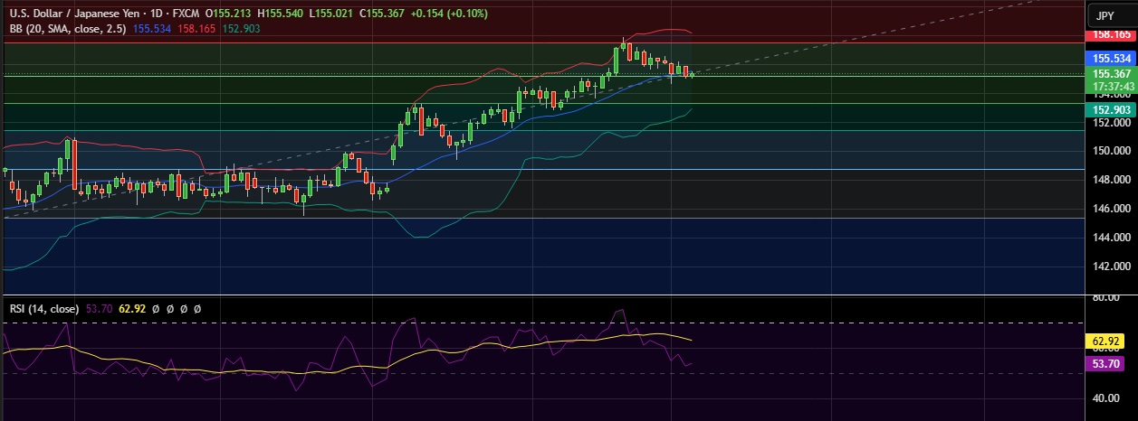 Recommendation: Good to sell around 155.40 with stop loss of 156.50 and target price of 154.50