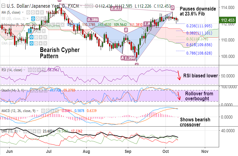 Resistance levels - 112.64 (5-DMA), 113, 113.43 (Oct 6 high)