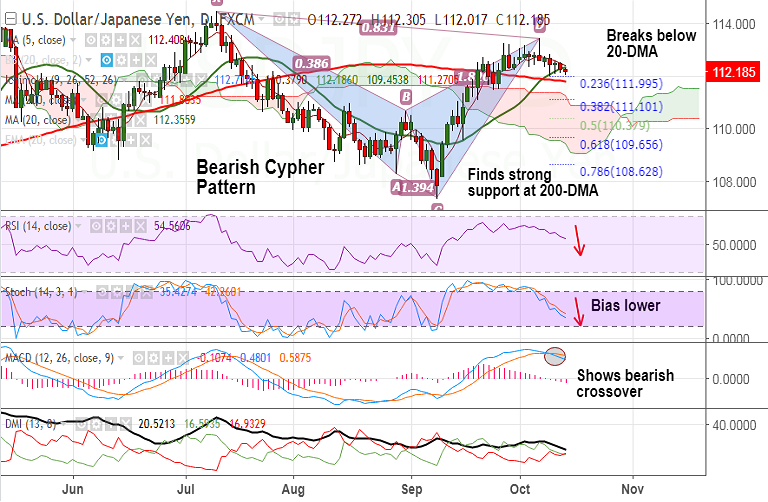 Resistance levels - 112.35 (20-DMA), 112.40 (5-DMA), 113, 113.43 (Oct 6 high)