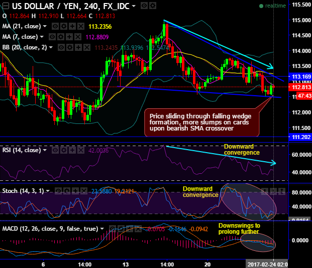 RSI signals gaining strength in selling sentiments as it converges to the mild sideways to downswings on intraday trend and a clear convergence to the slumps on weekly terms, while stochastic has been indecisive on the 4H chart but momentum in selling sentiments has been intensified on weekly terms.