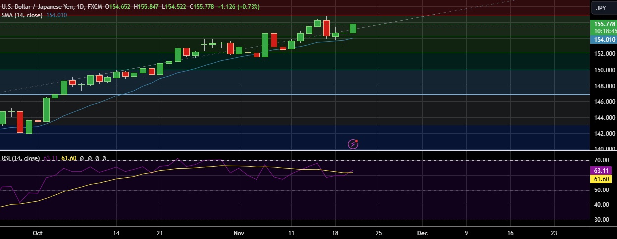 Recommendation: Good to buy around 155.70, with stop loss of 155.70 and target price of 156.50