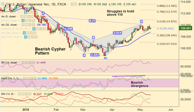 - The major struggles to hold gains above 110 handle, slips below 5-DMA support.