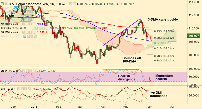 Support levels - 108.35 (50-DMA), 108.14 (100-DMA), 108, 107.65 (Apr 23 low)