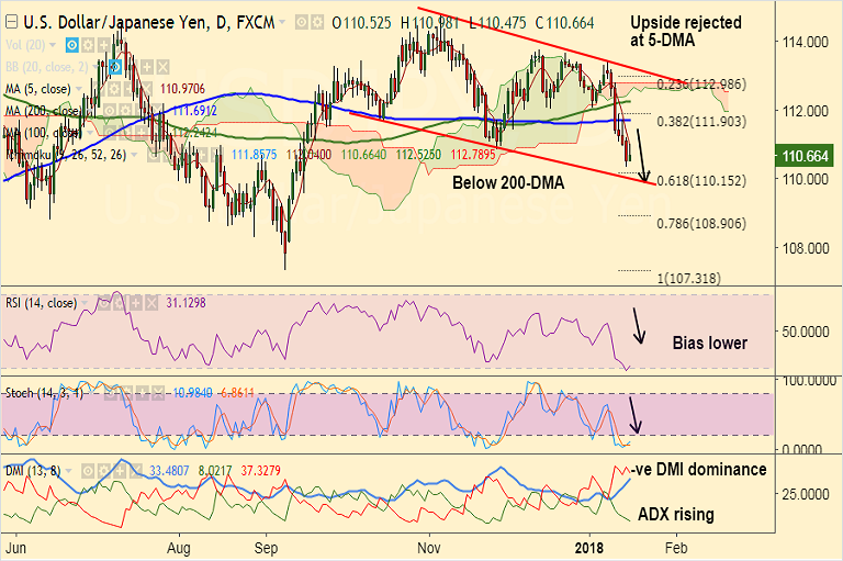 - Upside remains capped at 5-DMA at 110.98 which is immediate resistance. We see further upside only on decisive break above.