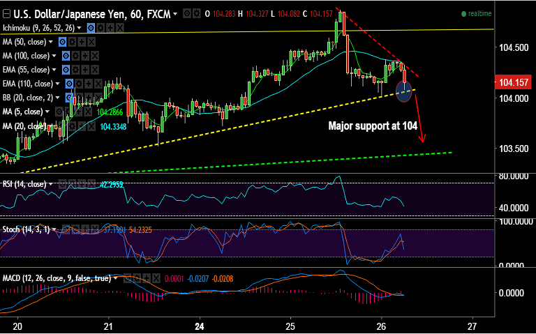- Finds major trendline support at 104, break below could see drag upto 103.50.