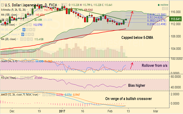 Support levels - 113.41 (20-DMA), 113, 112.59 (5-DMA)