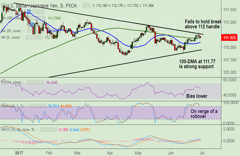 Support levels - 111.77 (100-DMA), 111 (nearly converged 20&200 DMAs), 110.23 (May 18 low), 109.55 (trendline)