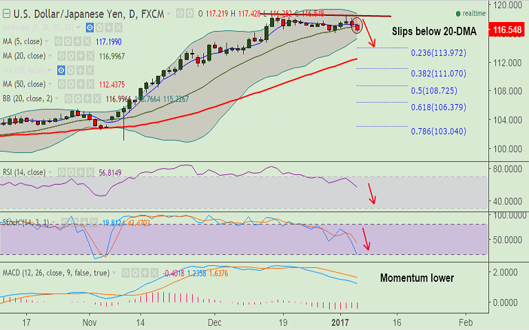 - On the flipside break above 117.19 (5-DMA) could see test of 118.45 ( trendline ).