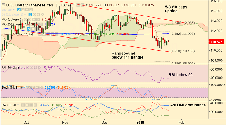 Resistance levels - 111 (5-DMA), 111.48 (Jan 18 high), 111.90 (38.2% Fib)