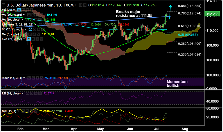Recommendation: Good to go long around 112.10/20, SL: 111.80, TP: 112.55/ 113