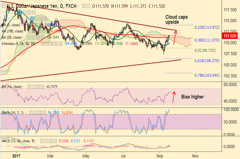 Support levels - 111.13 (100-DMA), 110.92 (5-DMA), 110.38 (50-DMA)