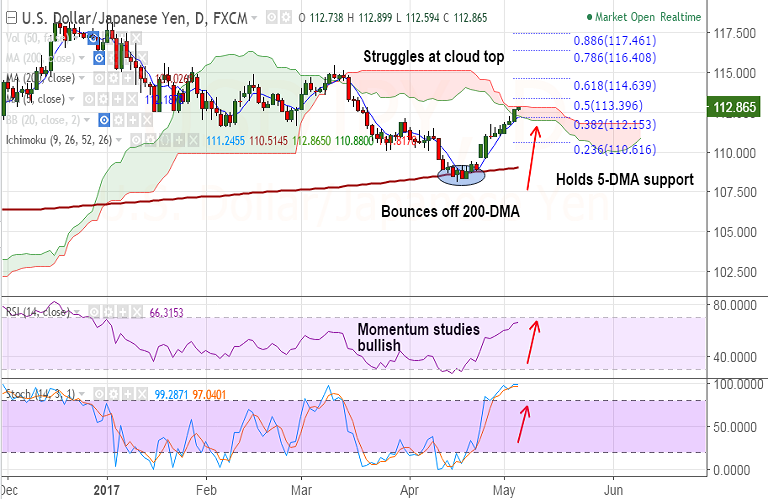 Support levels - 112.19 (5-DMA), 111.68 (50-DMA), 110.61 (23.6% Fib retrace of 118.662 to 108.13 fall)